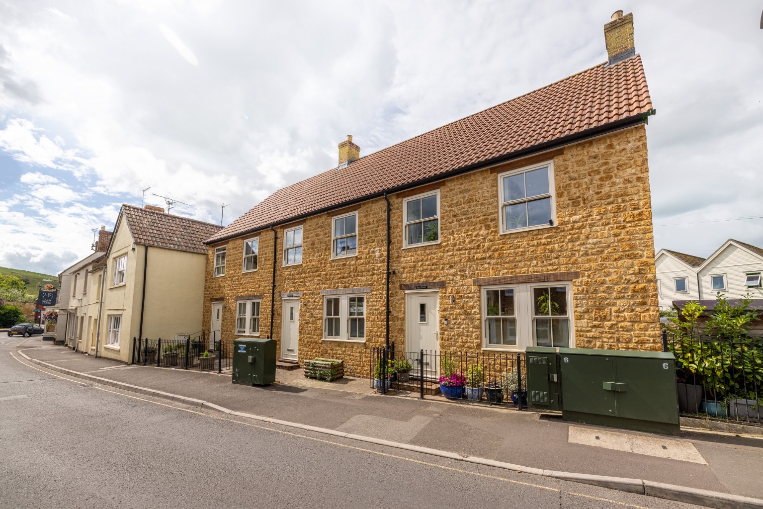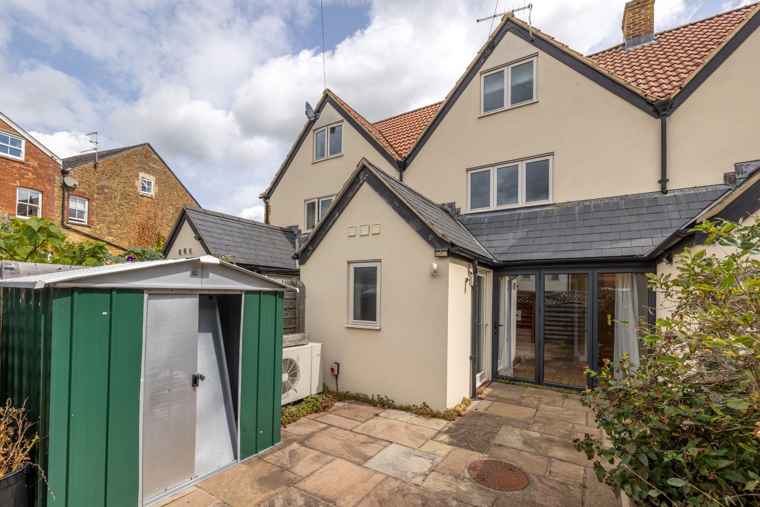 A handsome and contemporary three-bedroom townhouse in the centre of Castle Cary with parking and a courtyard garden.