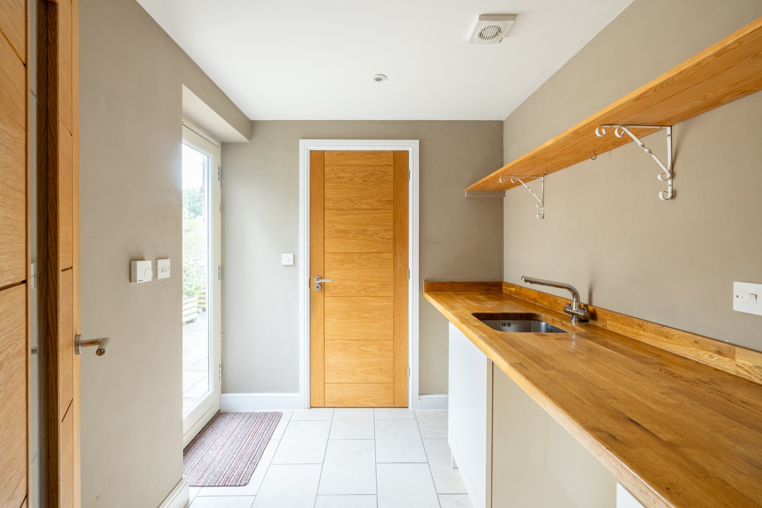 Adjacent to the kitchen is a utility where there is plumbing for a washing machine, a secondary sink, further storage, a rear door and a cloakroom.