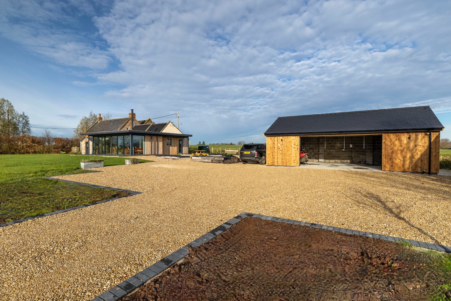 Outside the house is approached over a 350mt tarmacked drive which leads to a gravel drive with parking for several vehicles, and a large (3 car) garage. The total plot which includes gardens and pasture is approx. 4.6 acres.