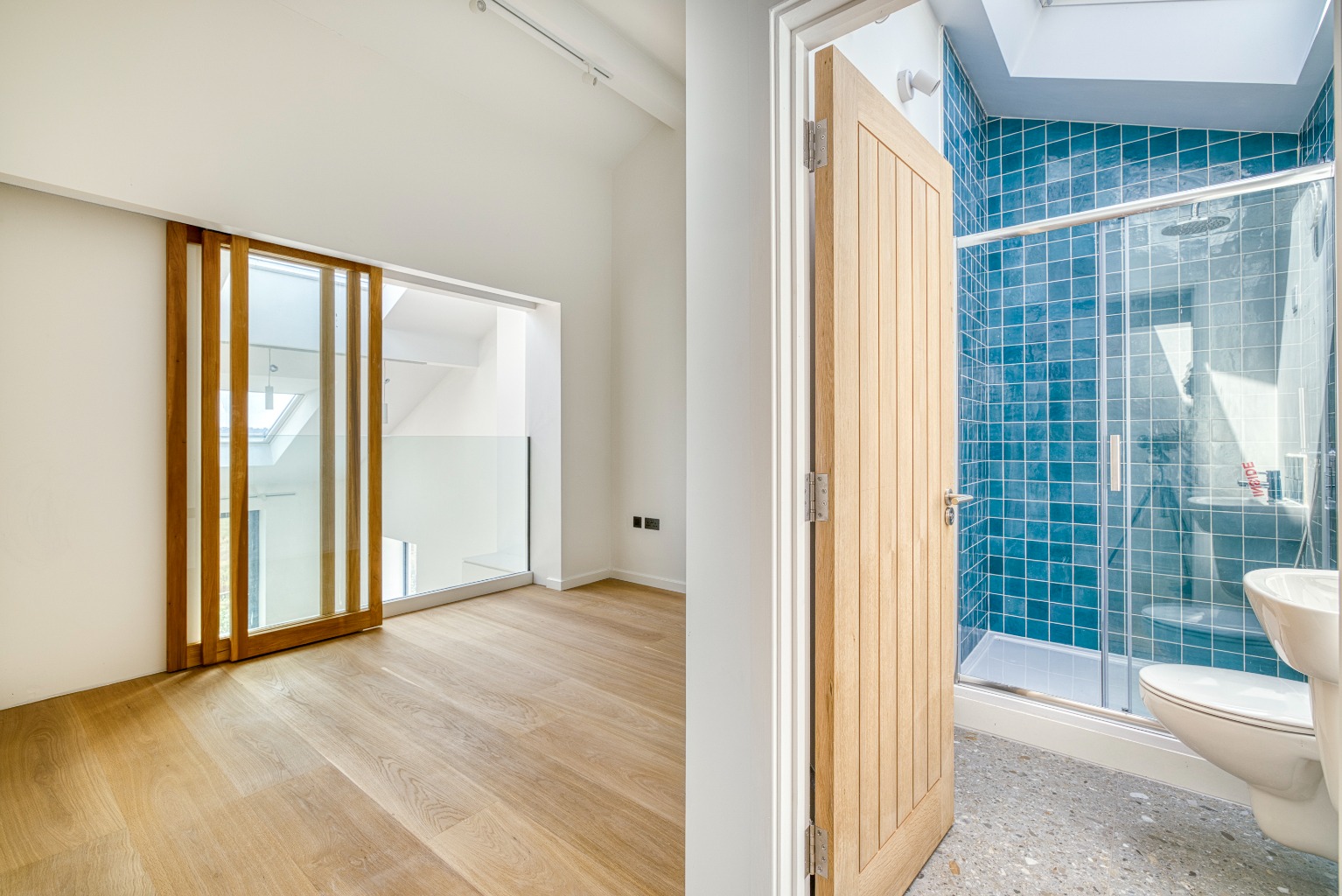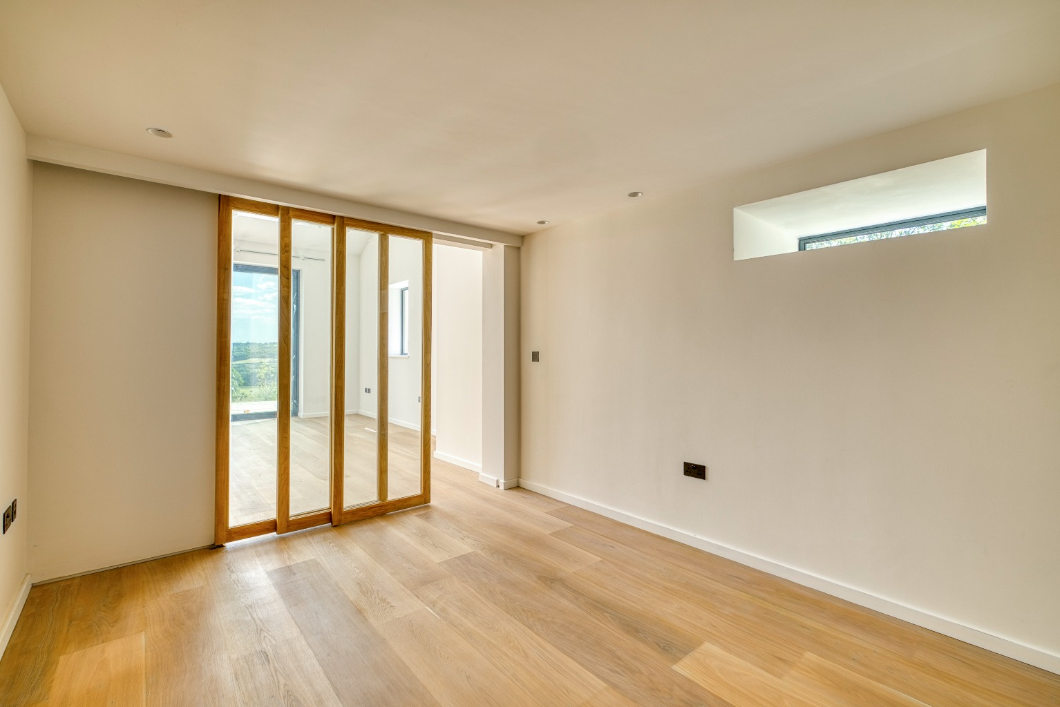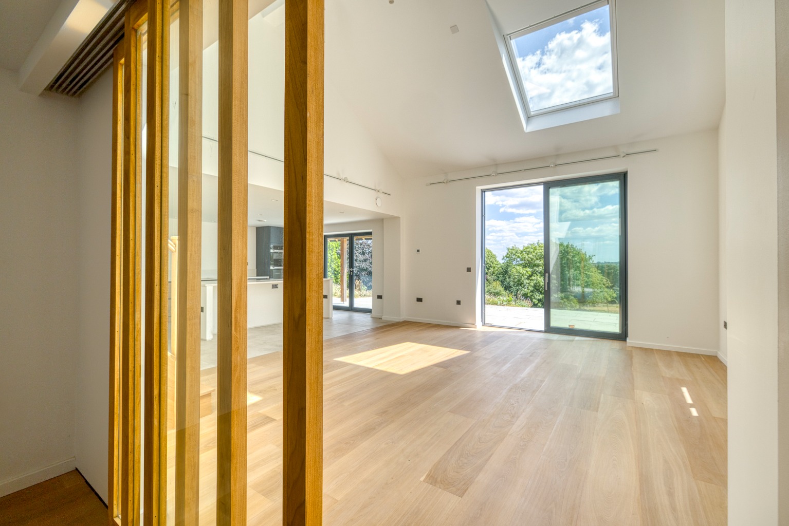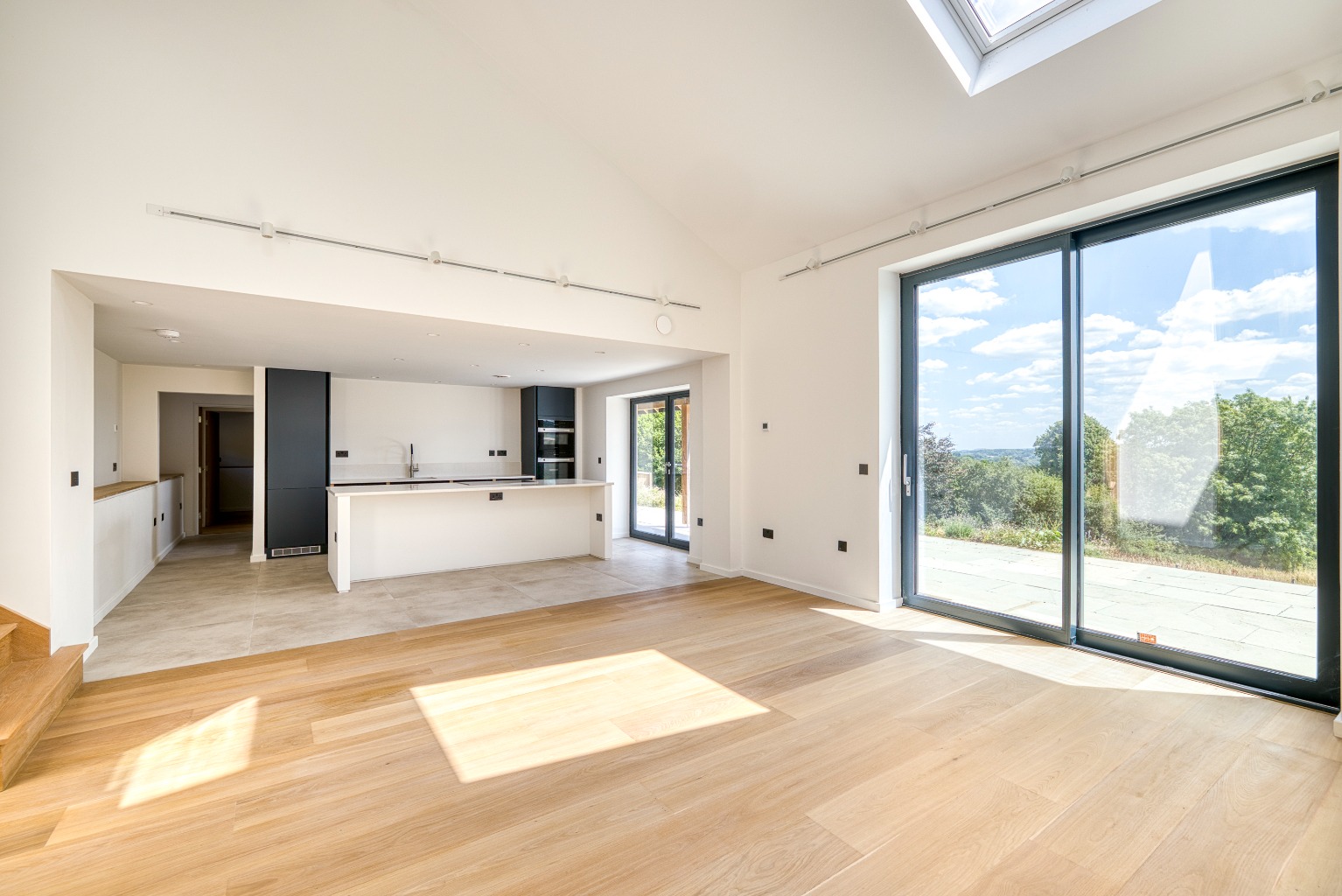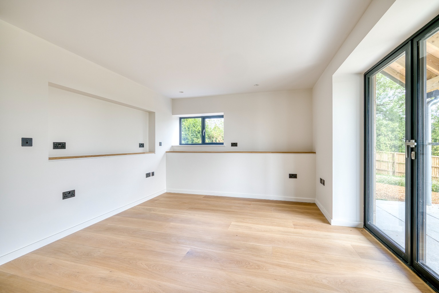 Built to an impressive specification, the property offers light, spacious and flexible accommodation arranged over two floors. The interior has been finished to a high standard throughout and benefits from mechanical heat recovery ventilation, an air source heat pump with underfloor heating, triple glazing, and oak flooring. Further features include a Rako lighting control system, top-level insulation, an electric vehicle charging point, and stylish Italian tiling in the wet rooms. Externally, the property is finished with a combination of render and solid wood cladding, achieving a striking yet sympathetic aesthetic.