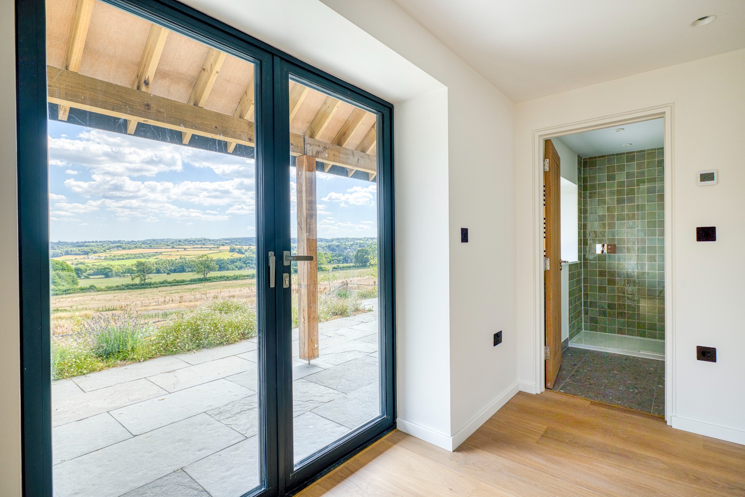 A beautifully crafted brand new four-bedroom detached barn conversion, recently completed and set in a peaceful rural location. This exceptional home enjoys superb, southerly facing panoramic views across open countryside, complemented by landscaped gardens, a small paddock, and generous driveway parking.