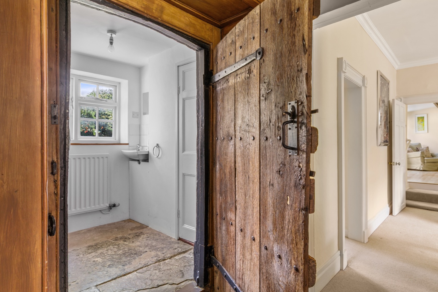 The house is approached via a small courtyard frontage, encompassed by wrought iron railings, with the front door opening into a panelled entrance hall with flagstone flooring. The character within the entrance hall sets the tone wonderfully for the rest of the property.