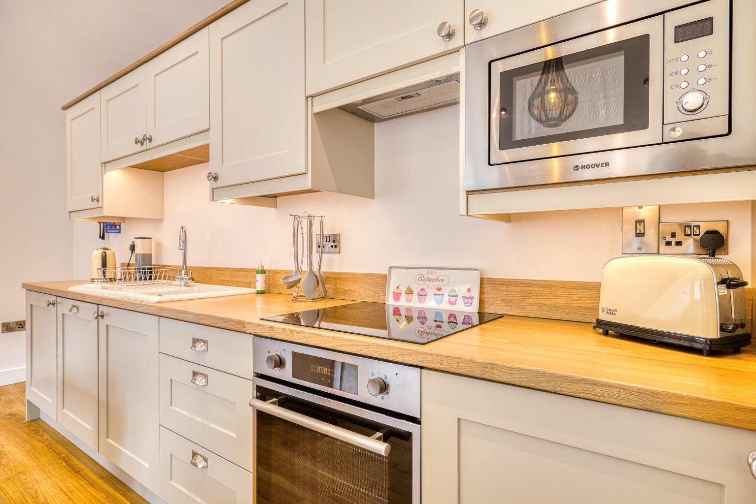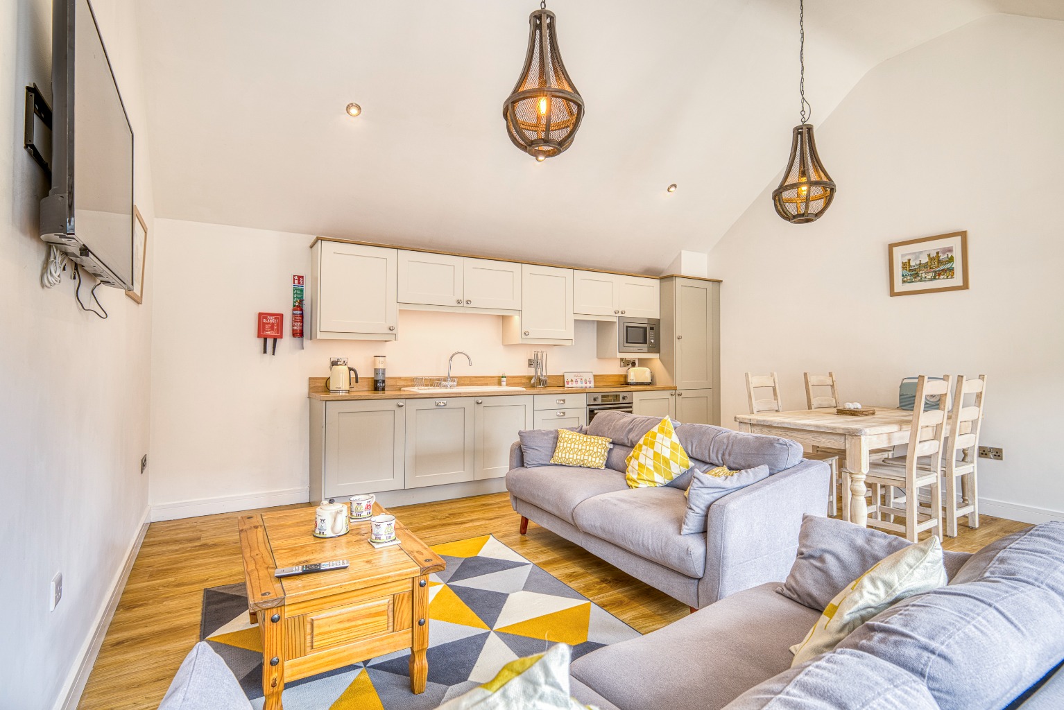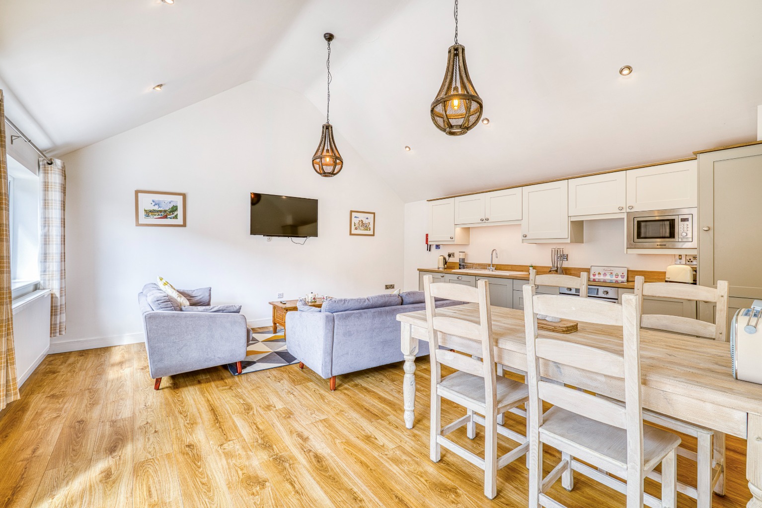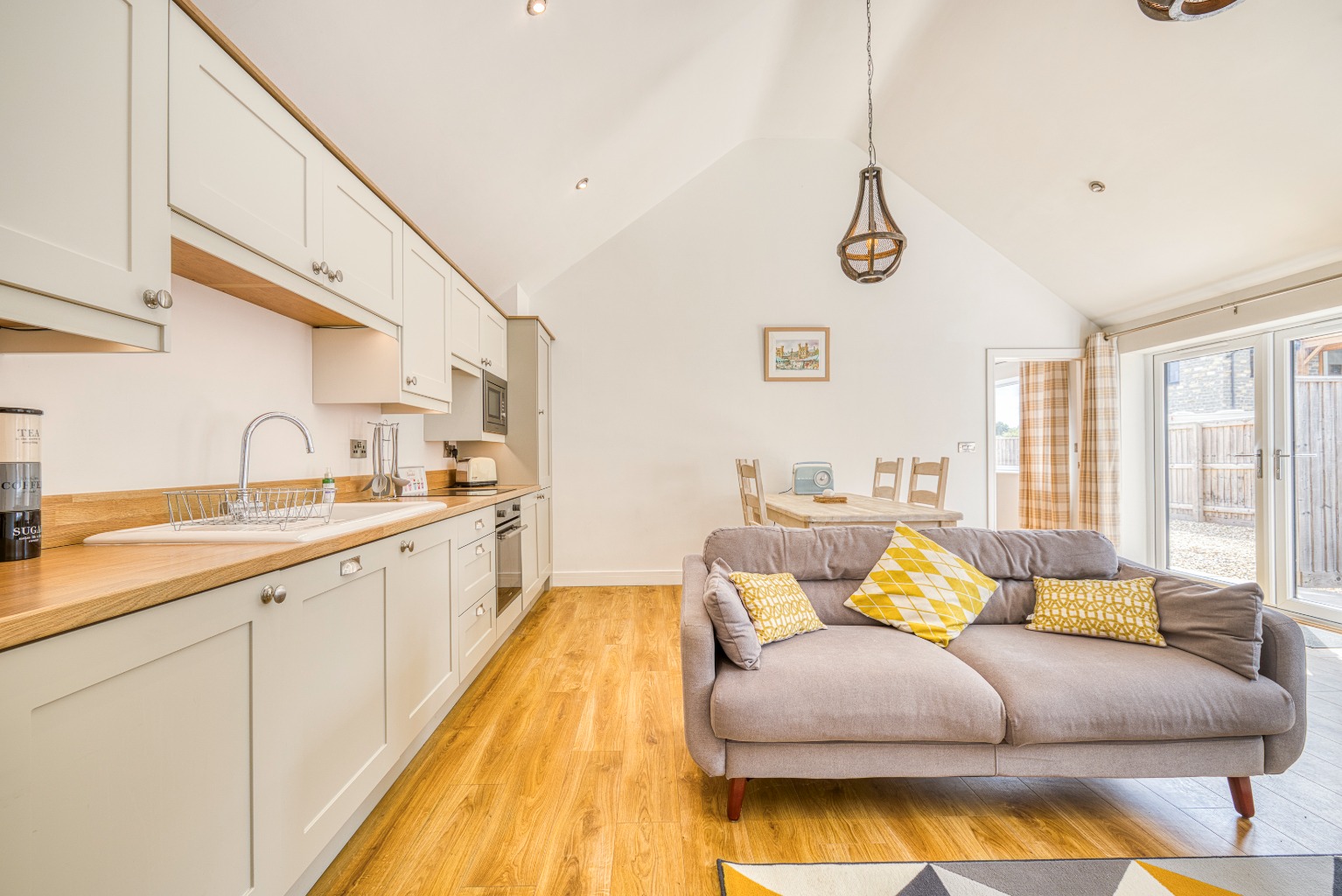 The annexe has a private courtyard garden, an open-plan kitchen/living area, two double bedrooms and a bathroom.