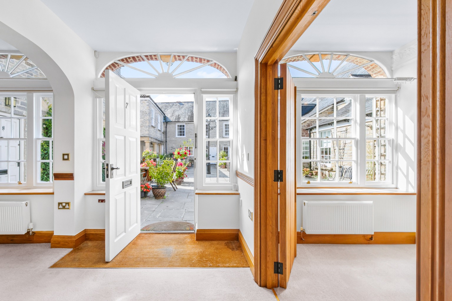 In front of the property is a delightful sunny courtyard, and nearby parking is allocated.