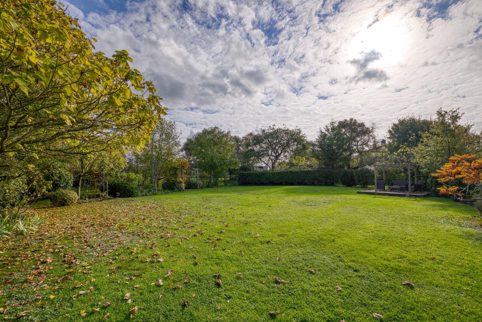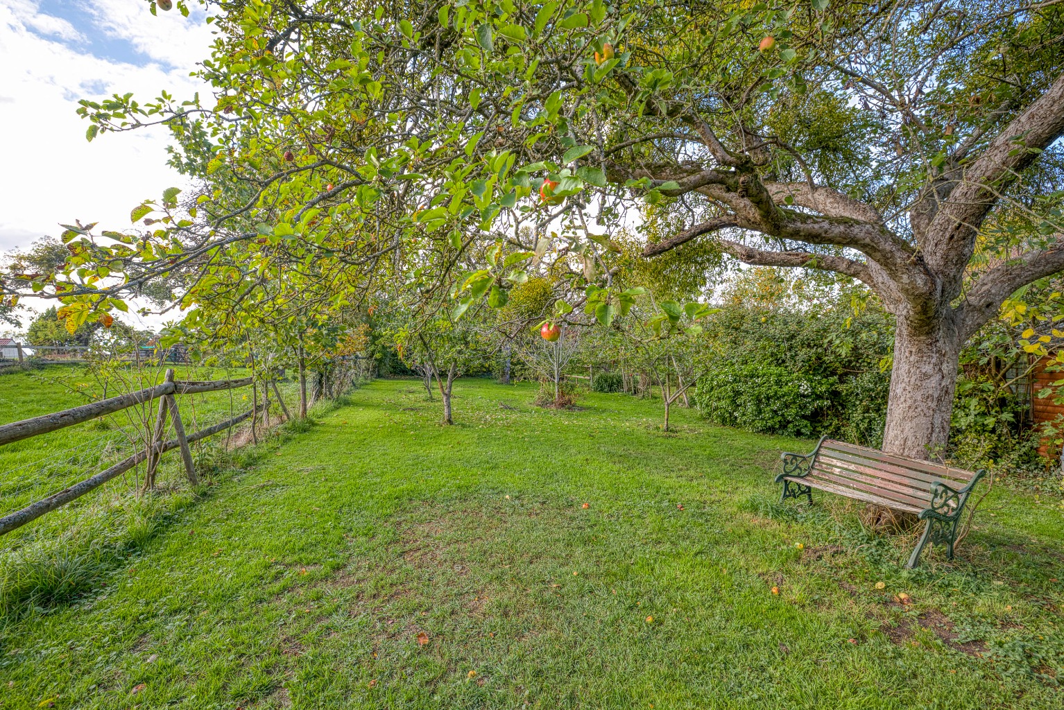 Generous gardens of about half an acre with fruit trees and garden studio