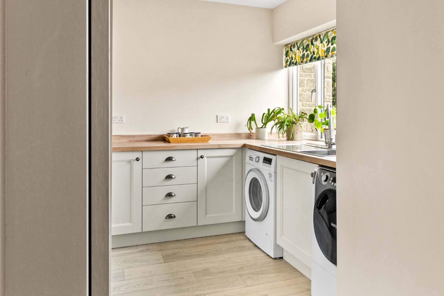 A door leads to the utility room which offers further storage and space and plumbing for laundry facilities, whilst a useful boot room provides ample additional storage.