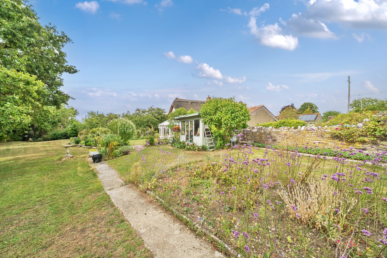 Constructed of local Lias stone beneath a thatched roof (re-thatched in 2021), this detached character home offers a wealth of period features including inglenook fireplaces, exposed beams, and deep-set window seats.