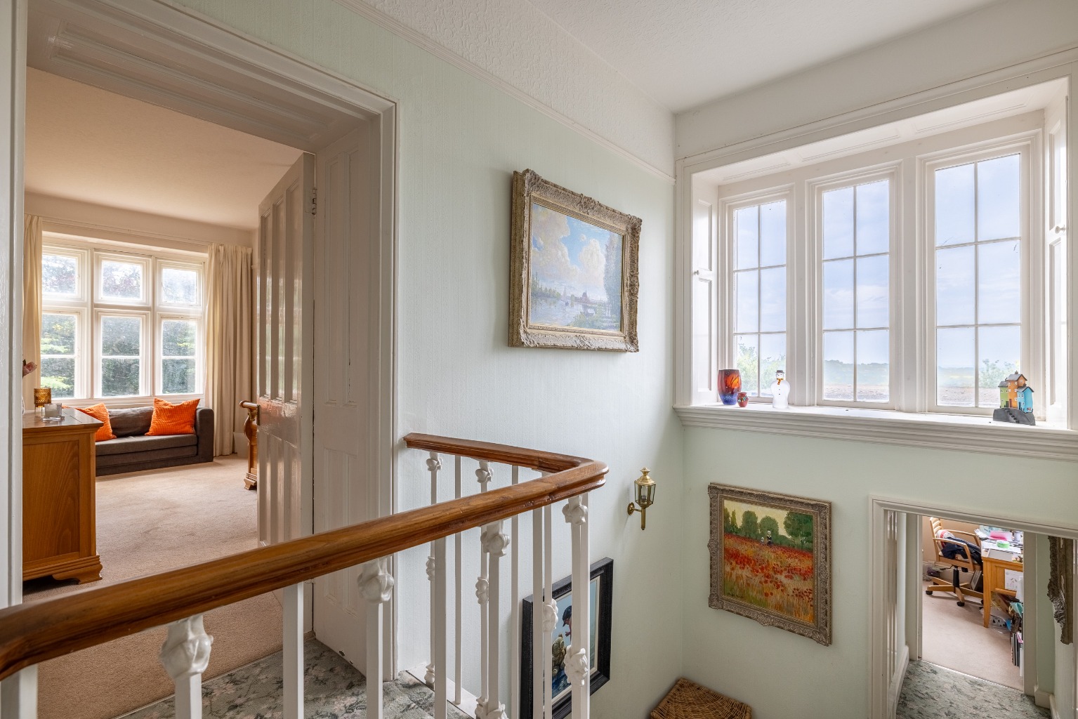 Outer and inner porches lead into the main reception hall which opens to the elegant drawing room with a south facing bay window ...