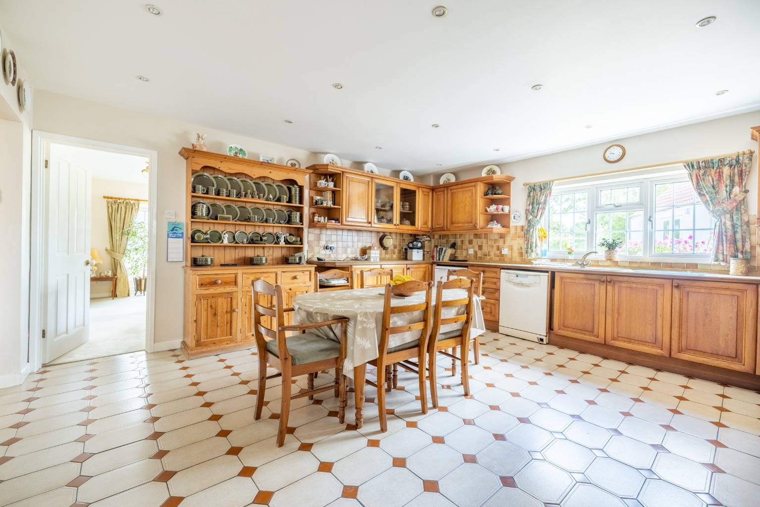 The kitchen is approached directly from the sitting room and also by double doors from the hall. It has a tiled floor, a good range of fitted units, tiled splashbacks, a two-bowl sink unit and appliances including a dishwasher double oven integrated hob and extractor unit.